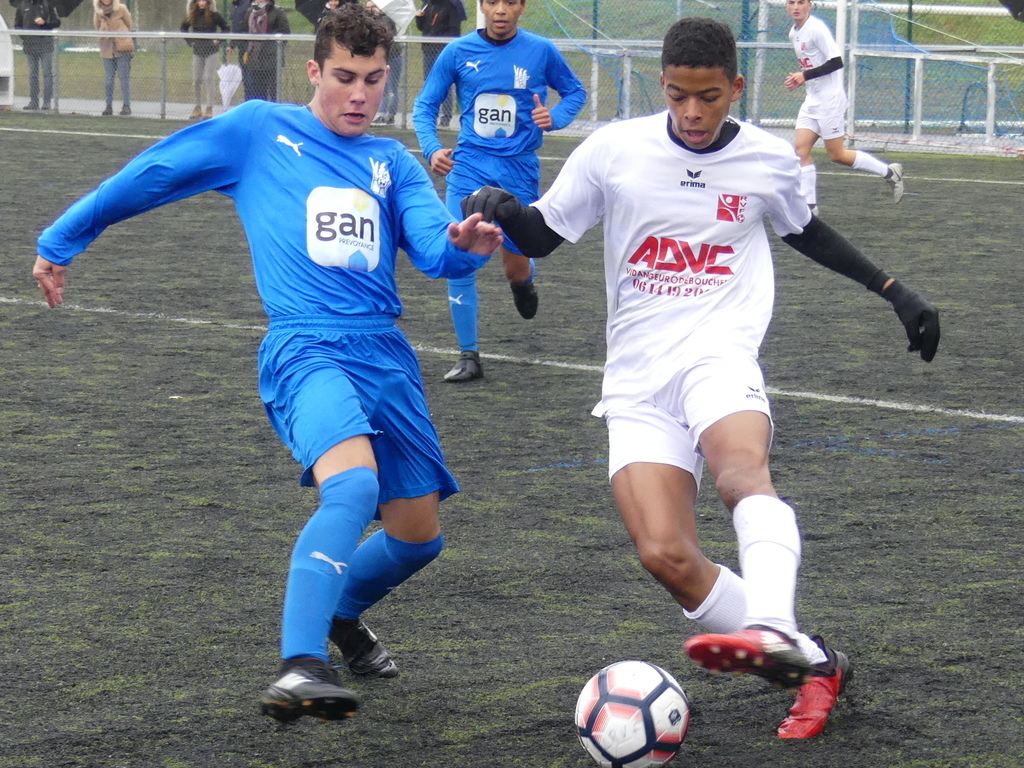 Eric THOMAS , PDG de l’entreprise ADVC ( Vidanges , hydrocurage etc ...) partenaire du club de la ROCHE VF , et Dominique GUILLET élu yonnais , étaient conviés par Patrick NICOLLEAU vice-président du club en charge du partenariat , pour la remise officielle d’un jeu de maillots aux U16 Région de Patrick ROUSSEAU avant leur match contre nos voisins de FONTENAY . Sous une pluie fine et un vent continu , c’est le VFF qui , avec le vent aura les premières occasions franches . Tout d’abord dès la 5’ sur un tir détourné en corner par le gardien yonnais , suivi d’une volée à nouveau détournée en corner . À la 14’ , l’attaquant visiteur verra sa tête à nouveau captée par le portier de la ROCHE VF . Il faudra attendre la 20’ pour voir la première approche sérieuse de la ROCHE VF avec Lenny DUFOUR qui passe à Keita BILAU dont le tir trouvera le gardien .La pression fontenaisienne sera récompensée par un pénalty à la 34’ pour une main dans la surface du défenseur Antoine GAUBERT . La VFF aurait pu corser l’addition 2’ plus tard sur un coup-franc. Les locaux tenteront de revenir au score avant la pause à la 39’ sur un joli centre de Florian TOURANCHEAU repris au-dessus de la transversale par Gatien VIOLLEAU . Dommage ! L’ultime tentative avant la pause sera l’œuvre de Mathis CAILLAUD sur un tir non cadré .