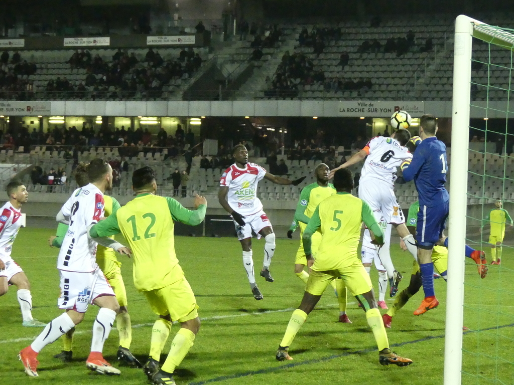Il ne fallait pas être en retard au match qui opposait LA ROCHE VF au FC NANTES ce samedi au stade Henri DESGRANGE puisque dès la 1´ de jeu les nantais ouvraient le score par Elie YOUAN sur une attaque rondement menée . Piqué au vif , les joueurs de Julien FRADET vont faire le nécessaire pour revenir dans la partie en proposant un jeu collectif , équilibré dans la moitié de terrain nantaise . Il faudra attendre la 17’ pour voir le premier tir yonnais d’Antonin BERJON passer au-dessus de la cage du gardien Alexandre OLLIERO . A la 24’ , c’est au tour d’Abdelnour BOUHENNI de voir son tir facilement stoppé par le gardien nantais , puis aux 27’ , 28’ et 30’ , Hakim BOUHENNI ne parviendra pas , lui non plus , à tromper OLLIERO . Méhoué TRAORÉ ne fera pas mieux à la 37’ pas plus qu’Elie YOUAN pour les nantais à la 39´ . A la pause , les nantais rentraient aux vestiaires avec l’avantage du but marqué en début de match .