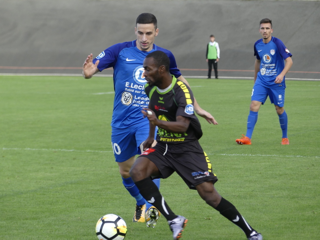 Tout était prêt pour une belle rencontre entre le premier de National 3 et le FC SABLE juste derrière le groupe de tête de cette poule des Pays de Loire . Sur une pelouse parfaite , avec un temps idéal pour jouer au football , les hommes de Julien FRADET voulaient confirmer leur bonne entame de championnat . Ce fût chose faite durant les 20 premières minutes oú LA ROCHE VF faisait le jeu et se montrait dangereuse devant la cage de Vincent LORENTIN à deux reprises . Une première fois avec Antonin BERJON à la 11' qui ratait son face à face avec le gardien sarthois et une minute plus tard quand Méhoué TRAORÉ voyait sa reprise de volée déviée par le gardien visiteur .