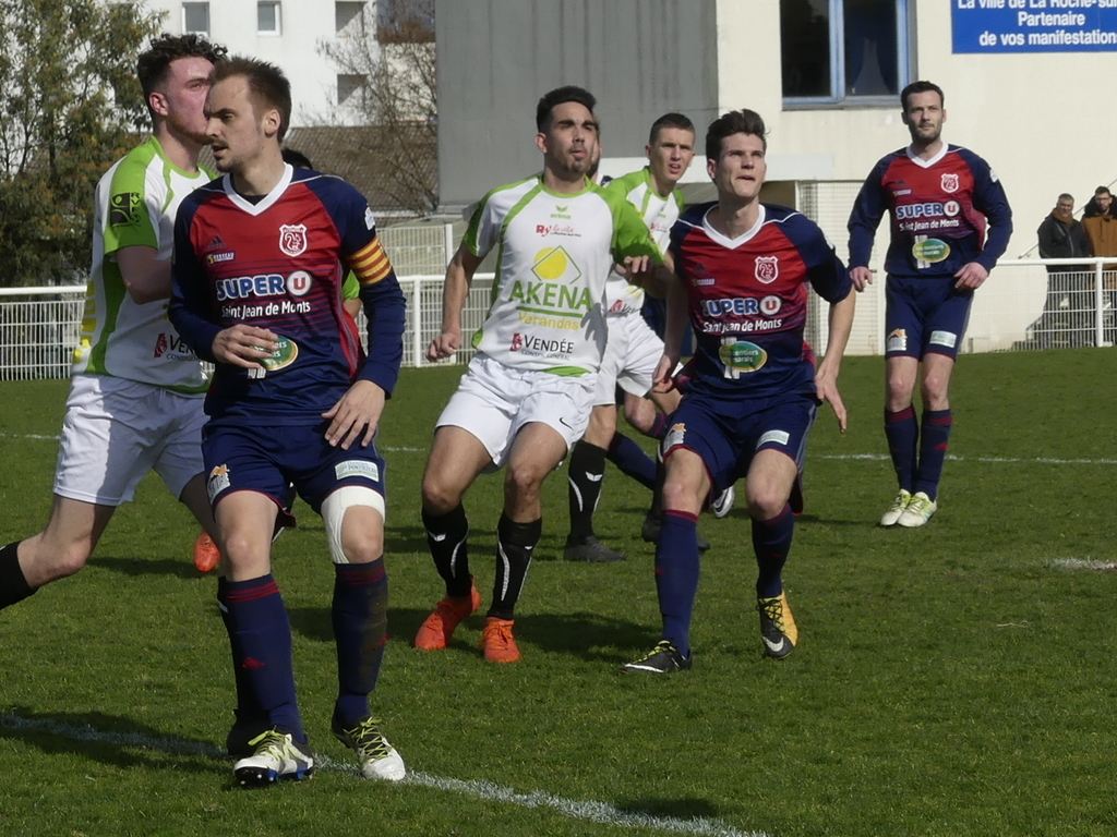 De retour des vestiaires , Yan AUDAIRE , toujours lui , voit sont tir détourné en corner à la 48’ . Contre toute attente , c’est LA ROCHE VF qui va inscrire son second but à la 50’ par l’excellent Killian MOLLE qui bat le gardien Damien CHARNEAU après avoir récupéré un ballon au 18 mètres . Les visiteurs vont alors tout faire pour revenir au score et multiplieront les situations dangereuses devant la cage de Thibaut CARTWRITH , à la 52’ avec une transversale de Michael VIERA , à la 67’ sur une tête non cadrée puis à la 75’ quand le but marqué par ST JEAN DE MONTS sera refusé sur hors-jeu . Auparavant , LA ROCHE VF aura aussi son but marqué par Sergueï AROUTIOUNIAN puis refusé sur hors-jeu à la 56’ . Les visiteurs qui avaient la maîtrise du ballon vont marquer sur pénalty par Yan AUDAIRE à la 76’ après une faute du capitaine Berthier EYOBELE dans sa surface . LA ROCHE VF , sonnée , va subir les assauts de ST JEAN DE MONTS qui sera tout près de marquer pour l’emporter à plusieurs reprises . Tout d’abord à la 80’ , puis lorsque la transversale suppléera Thibaut CARTWRITH à la suite d’un coup-franc à la limite de la surface à la 83’ et enfin avec deux tirs au-dessus aux 85’ et 89´ !