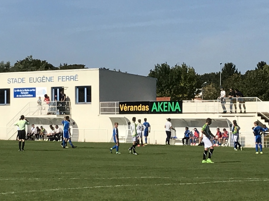 C'est sous un soleil radieux et généreux que les joueurs d'Adrien MERCIER ont entamé la partie contre les sud-vendéens en proposant un jeu rapide et collectif . Plus agressifs , plus joueurs , les yonnais attendront la 18' pour voir la première grosse occasion de la part de Loan LESCOT échouée sur la transversale des visiteurs . À la 28' , c'est Paul TIRAND qui ouvrait le score pour les hommes du capitaine Romain BOSSARD d'un superbe tir des 20 mètres . 5' minutes plus tard , LA ROCHE VF va rater un pénalty mais se rattrapera aussitôt en doublant la mise par Paul GABORIEAU suite à un cafouillage .