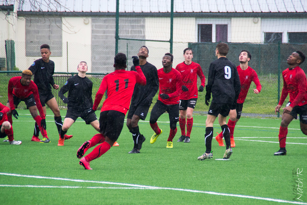 0 – 1 à la mi-temps : but de Raph Gallet de la tête sur un centre de la droite servi par Mathis Charrier.