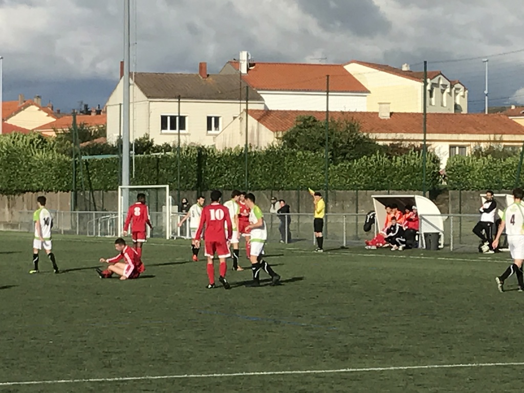 En 1ère mi-temps la roche a fait le jeu mais s'est fait surprendre à l 38' en contre après une perte de balle . Notre équipe a un peu baissé les bras et a encaissé un second but sur coup-franc à la 35' .