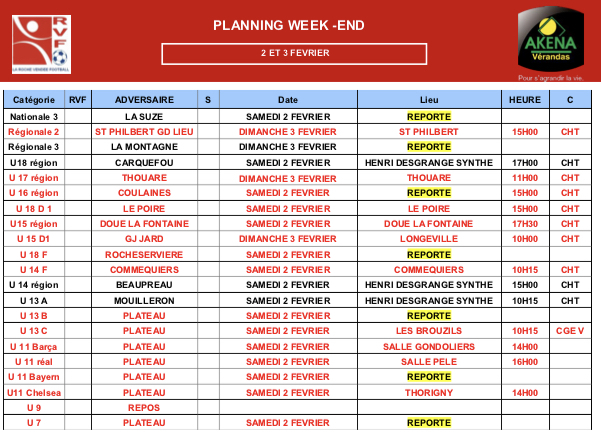 Le match de LA ROCHE VF contre LA SUZE reporté.