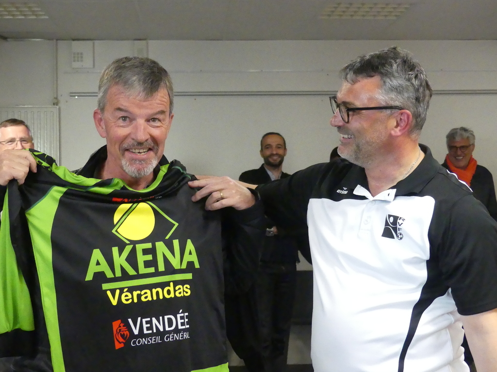 C’est une histoire de 8 années entre le club de LA ROCHE VF et Christophe CHABOT président d’AKENA VÉRANDAS , principal partenaire . Christophe ayant décidé de faire une pause dans son partenariat avec le club , le président délégué Thierry BARBARIT ne manquait pas d’émotion pour remercier quelqu’un qui a beaucoup œuvré pour redresser un club en mauvaise posture .