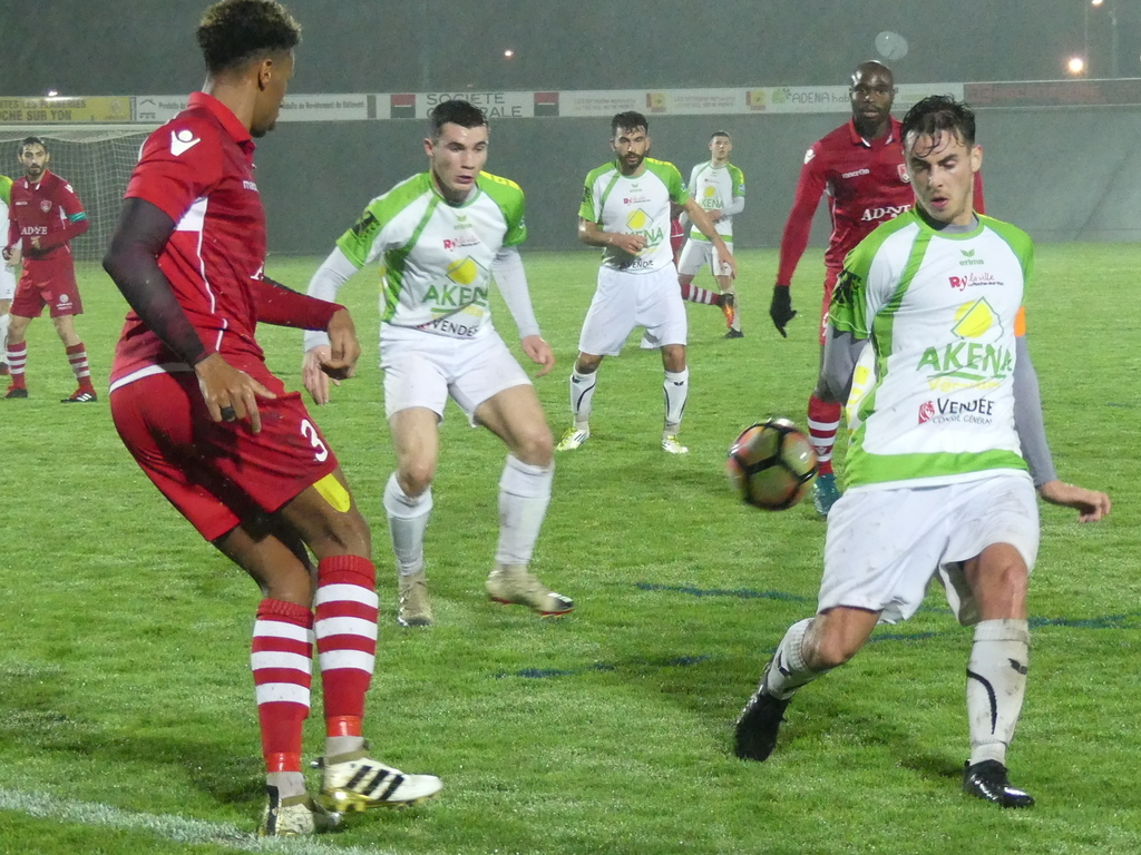C’est sous une pluie fine mais continue que le match opposant LA ROCHE VF aux ROBRETIÈRES à eu lieu sur le terrain d’honneur du stade Henri DESGRANGE. LA ROCHE VF va prendre rapidement l’ascendant sur son adversaire puisque dès la 6´ la première alerte se déroulait dans la zone des ROBRETIÈRES avec un duel perdu de justesse par Killian MOLLE face au gardien David TEILLET . 2’ plus tard , Amory GEOFFRIT déborde sur le côté droit , centre sur Louis ROBIN qui rate , ainsi que Charly CHEVRIER après avoir récupéré le ballon . La première occasion pour les visiteurs est l’oeuvre de Sullivan PLANCHET qui verra son tir capté par Antoine NAKKACHI à la 13’ . LA ROCHE VF ouvre la marque une minute plus tard suite au débordement rapide de Killian MOLLE côté gauche qui va battre David TEILLET sur un tir décroisé . À la 17’ , c’est au tour d’Amory GEOFFRIT de doubler la mise après une passe lumineuse de Charly CHEVRIER . Par la suite , les occasions seront pour les locaux qui seront dangereux à plusieurs reprises . À la 20’ quand Killian MOLLE perd son duel face au portier adverse , à la 23’ quand Maxime DESMARS voit son coup-franc passe à côté du but de TEILLET , à la 35’ sur un tir de Killian MOLLE trop enlevé et enfin lorsque Baptiste MINAUD fera briller David TEILLET à la 38´ . Score à la pause 2-0 pour LA ROCHE VF .