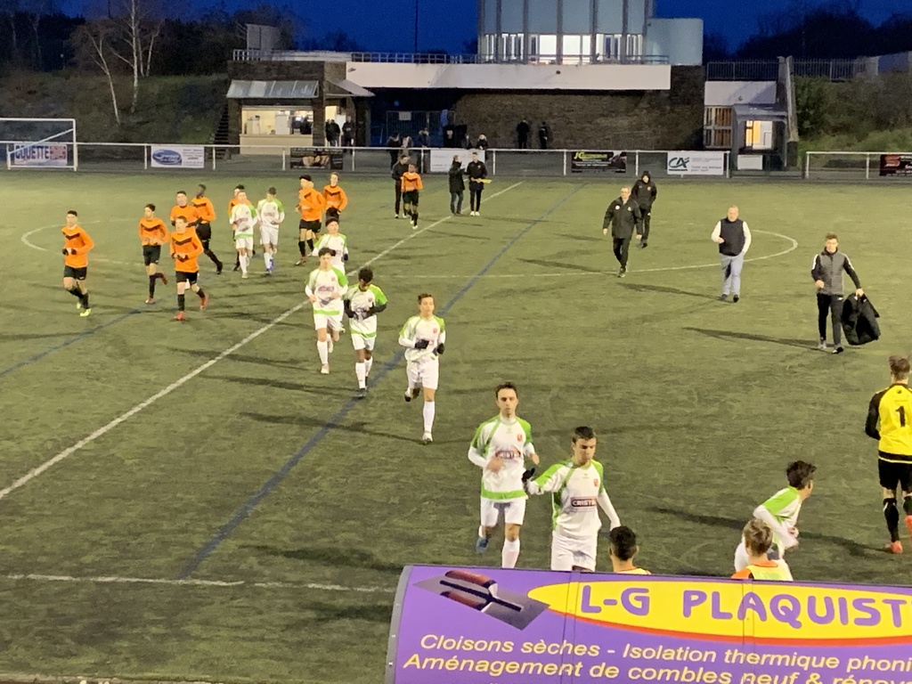 Pas d’arbitre officiel, tirage au sort et notre Laurent BODET est désigné. Entame de match idéale avec un but de Teddy GAUTREAU de la tête sur un centre de Mathis CANTIN dès la deuxième minute. La première mi-temps se déroule bien avec une bonne maîtrise de notre part et un deuxième but de Teddy GAUTREAU à la 43ème toujours de la tête sur un centre de Savio FARRUGIA vient la terminer de la meilleure des façons . La seconde mi-temps devient très hachée avec un adversaire faible dans le jeu mais qui fait de plus en plus de fautes. Un but de Pierre LUROT à la 75ème d’un magnifique lob va sceller définitivement le score du match. L’arbitre sifflera et arrêtera le match 3 minutes avant la fin calmant définitivement les nerfs de l’adversaire. Cette victoire est celle d’un groupe soudé et motivé qui a su trouver les ressources nécessaires pour obtenir ce bon résultat et garder la première place du classement