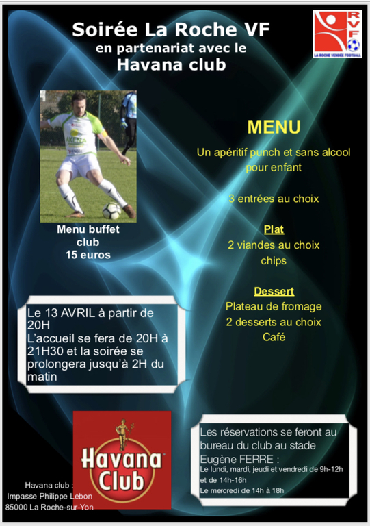 La soirée est fixée au samedi 13 avril 2019 au HAVANA CAFÉ - 6, impasse Philippe LEBON à la ROCHE SUR YON