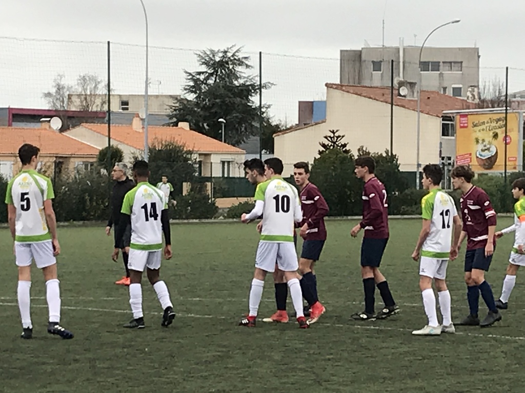 Sur le synthétique de DESGRANGE et sous un ciel gris , les U18 D1 coachés par Éric VINCENT , en remplacement de Bertrand SAVINAUD parti avec les U17 Région , affrontaient le GJ FOUSSAIS . Composée de 10 U16 , 4 U17 et aucun U18 , l’équipe d’Eric VINCENT paraissait jeune mais ambitieuse . Le premier but de LA ROCHE VF sera l’oeuvre de Thomas BOUTIN bien lancé par Mathis CAILLAUD (14’ ) . 2 minutes plus tard , le N°7 de FOUSSAIS ratait l’égalisation , le ballon étant capté dans ses pieds par le gardien Enzo RIVA . Sur un corner tiré par Jarod BIZIÈRE à la 24’ , Titouan GABORIT doublait la mise de la tête. La dernière occasion de la mi-temps sera pour le N°4 de FOUSSAIS qui rate une reprise , seul devant le gardien yonnais .