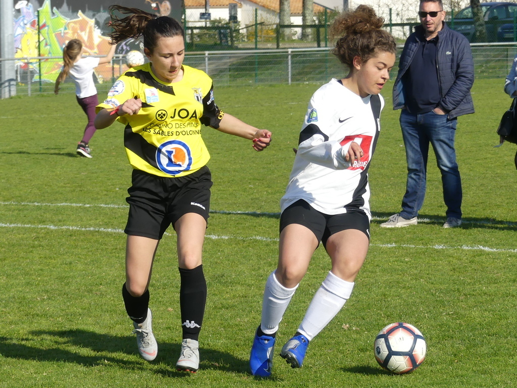 C’est sous un beau soleil que les filles de Fabien LEGAL rencontraient leurs homologues du TVEC LES SABLES sur l’annexe du stade Eugène FERRÉ. En manque d’effectif , les visiteuses qui jouaient à 7 contre 8 , étaient dominées dès le début de match , mais à chaque but marqué par les yonnaises , elles répondaient but pour but grâce aux largesses de la défense locale . Si bien qu’à la mi-temps , LES SABLES menait au score 3-2 !