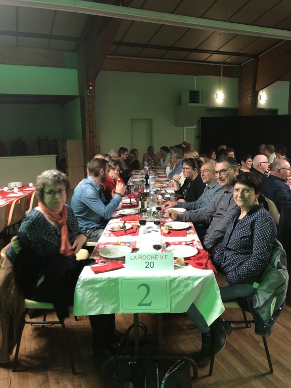 Ce samedi 02 Mars , le club des ROBRETIÈRES organisait son repas annuel à la salle des fêtes du BOURG SOUS LA ROCHE . Le président Thierry BARBARIT voulait une représentation importante du club de LA ROCHE VF , ce qui fut le cas puisque bonne vingtaine de personnes , du CODIR et dirigeants , occupait une table .