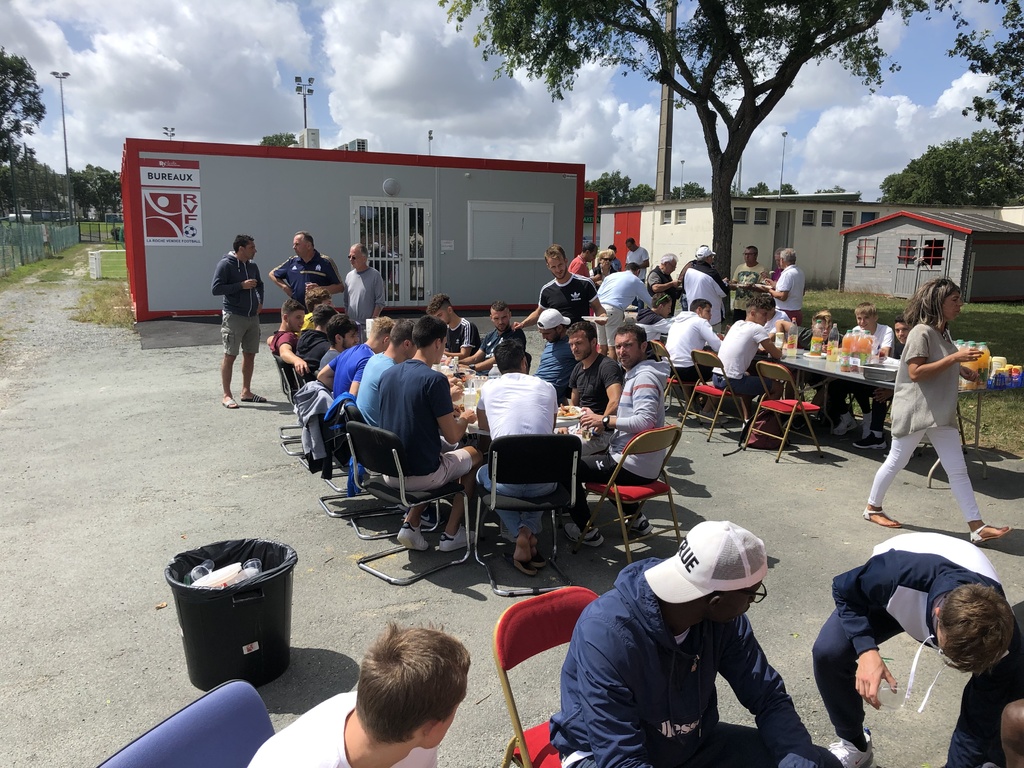 Ce samedi 10 août tous les séniors du club et leurs dirigeants étaient rassemblés au stade Eugène FERRÉ pour une journée de cohésion . Autour du président Philippe VIOLEAU les joueurs présents des trois équipes de LA ROCHE VF ont pu échanger afin que chacun puisse mieux l’autre .