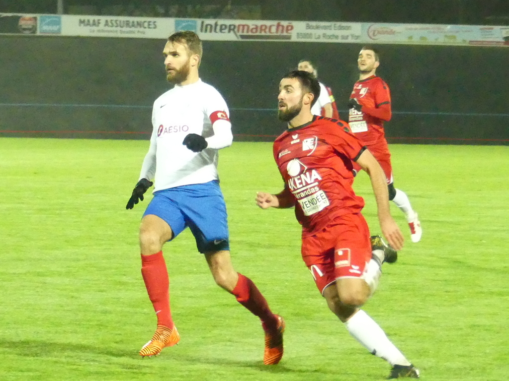 C'est sur un terrain gras que les joueurs de Charles DEVINEAU jouaient leur tour de Coupe des Pays de Loire contre REZÉ , une équipe de R1 , située en haut de tableau . Dès la 9´ , BERJON récupérait un ballon ben placé , mais perdait son duel face au gardien nantais . À la 16' , c'est CHARRIER qui titillait la transversale de BEAUREPAIRE sur un centre de DABIN . Il faudra attendre la 20' , pour voir l'ouverture du score par BERJON après un coup-franc exécuté par BONNET . REZÉ va réagir sur un coup-franc , mais la tentative ne donnera rien . LA ROCHE VF appuie toujours ou ça fait mal , DABIN et BERJON sont tout près de doubler le score aux 31´ et 32' , le premier sur un tir dans le gardien et le second sur une jolie tête . Dans la minute qui suit , BERJON va parvenir à doubler la marque sur un centre de DABIN , Juste avant la pause , MENDY est tout près de marquer le troisième but sur un centre parfait de GERMANN .