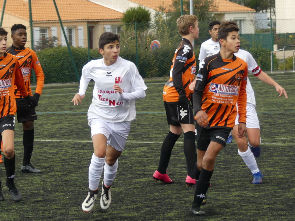 C’est sur le terrain synthétique du stade DESGRANGE que s’est déroulé le match des U15 Région contre TTHOUARÉ .À la 4ème minute , un premier corner pour nos Yonnais. Une minute plus tard centre de Côme TUY pour Kenzo PIOMBINO qui remet à Tom ARNAUD, celui-ci ne laissera aucune chance au gardien de THOUARÉ en marquant le premier but sur une jolie frappe . A la 17ème minute sur une belle balle en profondeur, l’avant centre de THOUARÉ se retrouve à 20 mètres du but sans défenseur entre lui et notre gardien, mais Côme TUY sur un bon retour lui enlève le ballon des pieds avant qu’il puisse armer son tir . À la 27èmeminute, un contre de Maël NAUD sur un mauvais dégagement du défenseur adverse et Tom ARNAUD , bien placé , place le ballon au fond des filets de THOUARÉ , 2 – 0. Malgré le score , nos jeunes ont du mal à faire le jeu et à imposer le rythme dans cette première période.