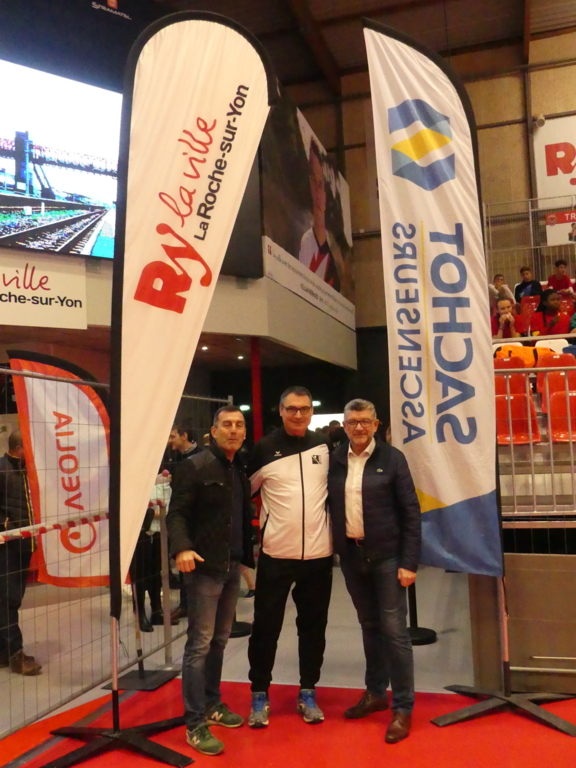 Luc BOUARD , Maire de LA ROCHE SUR YON , accompagnés de Bernard QUENAULT et Dominique GUILLET , sont passés par le terrain SACHOT des OUDAIRES où se disputent les rencontres de la poule U13 Elite . Ils ont rencontré les bénévoles , quelques partenaires présents ainsi que le président délégué Thierry BARBARIT .