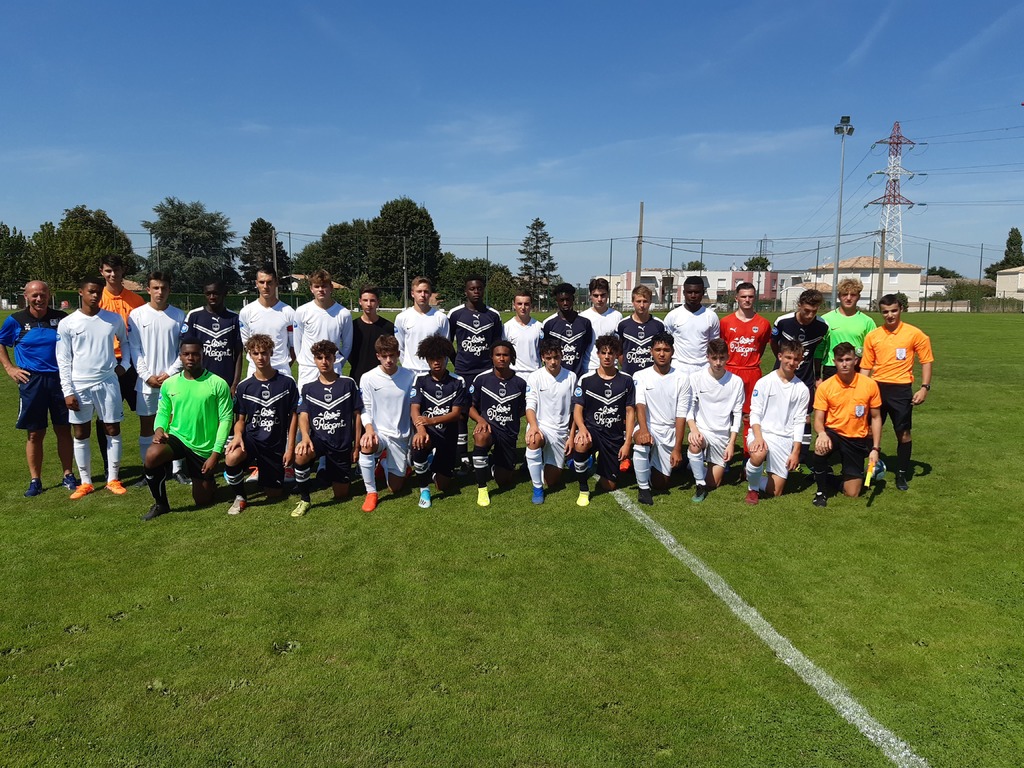 Pour le premier match de la saison, les U17 yonnais se déplaçaient à BORDEAUX . Et c'est sous une température de 38 degrés que débutait ce match. Pascal BRACONNIER, le nouveau coach yonnais avait prévenu ses joueurs que ce match ne serait pas facile. Et ce fût le cas ! L'entame de match était en faveur des girondins et à la dixième minute le numéro 9 de Bordeaux se présentait seul devant le gardien yonnais mais il croisait trop sa frappe. Les yonnais réagissaient et sur un joli mouvement collectif , Enzo GUILLOU centrait au deuxième poteau sur Hugo BEIGNON qui remisait sur Mathys VRIGNON , hélas sa frappe était captée par le gardien adverse. Les bordelais accentuaient alors leur domination et par deux fois (au 12’ et 23´ ) Thomas ERCEAU , le gardien yonnais remportait son face à face , ce qui permettait à la ROCHE VF de rester dans le match. A la 31’ c'est encore le numéro 9 bordelais qui , bien lancé dans le dos de la défense yonnaise , se présentait seul devant le gardien mais loupait une nouvelle fois le cadre. L'orage était passé. A la 38’ Enzo GUILLOU lançait Hugo BEIGNON qui se présentait seul devant le gardien bordelais mais son tir était repoussé par la barre. Ce n'était que partie remise puisque deux minutes plus tard Gatien VIOLLEAU trouvait de nouveau Hugo BEIGNON qui fixait le gardien et ouvrait le score pour la ROCHE VF. La dernière occasion de cette première mi-temps sera à mettre à l'actif des bordelais mais le lob du numéro 7 passera de peu à côté des buts. Mi-temps 1 - 0 pour LA ROCHE VF.