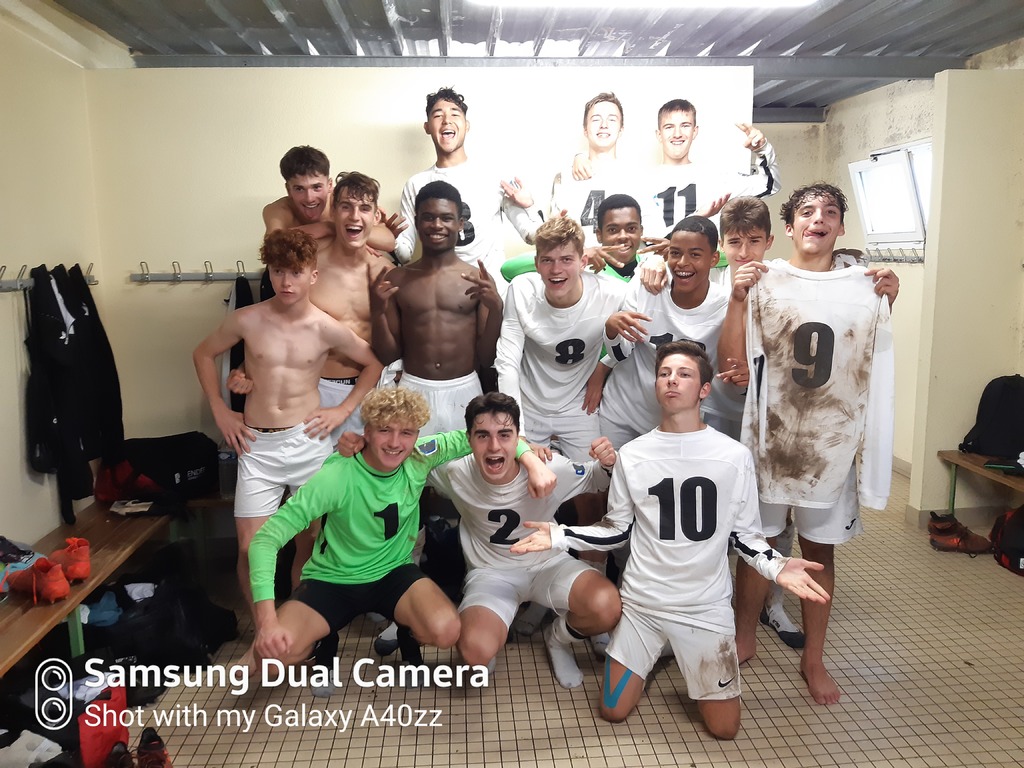 C'est sur une pelouse en mauvais état que débutait cette rencontre. Les yonnais avaient l'occasion de rattraper leur adversaire du jour au classement en cas de victoire. Pascal BRACONNIER avait prévenu ses joueurs de faire davantage d'efforts et d'être tous concernés. Message reçu cinq sur cinq puisque les yonnais allaient livrer un match de combattants. Et pourtant le premier quart d'heure était dominé par ANGOULÊME : À la 7 ème minute le numéro 9 profitait d'une mésentente entre le gardien et sa défense mais son tir était repoussé in extremis en corner par Antoine GAUBERT. 3 minutes plus tard le numéro 9 frappait de nouveau au but mais Thomas ERCEAU était sur la trajectoire. Puis, 3 minutes plus tard, un centre du numéro 2 au deuxième poteau trouvait le numéro 11 mais sa frappe passait légèrement au-dessus du but. Passé ce premier quart d'heure les yonnais se montraient plus incisifs, et se rapprochaient du but des angoumoisins. On jouait la 21 ème minute quand Mathys VRIGNON était fauché dans la surface. L'arbitre sifflait penalty. Mathys VRIGNON se faisait justice en prenant le gardien à contrepied et la ROCHE VF ouvrait la marque. A la 25 ème minute, les Angoumoisins tentaient de réagir mais la frappe du numéro 10 consécutive à un centre du 9 était bloquée par Thomas ERCEAU. 4 minutes plus tard Thomas PINEAU débordait sur l'aile, avant de centrer au deuxième poteau sur Daryl TCHATCHO, qui seul face au gardien , ne lui laissait aucune chance. Le break était fait ! Le match s'emballait : les angoumoisins prenaient des risques offensifs pour revenir au score mais s'exposaient aux contres des yonnais. Le KO était proche mais le tir d'Enzo GUILLOU sur un centre de Thomas PINEAU passait juste au-dessus (30 ème), puis c'étaient les tirs d'Hugo BEIGNON et de Joshua NAUD (35´et 41') qui étaient stoppés par le gardien. Entre-temps, suite à un corner du FC ANGOULÊME , le ballon repris de la tête était sauvé sur la ligne par Enzo GUILLOU ! Il était temps de siffler la mi-temps sur le score de 2 à 0 pour les yonnais.