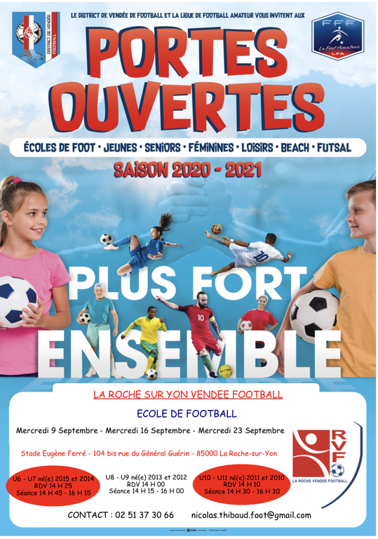Nous t'accueillons tous les mercredis de septembre au stade Eugène FERRÉ à la ROCHE SUR YONN de 14h00 à 16h30 .