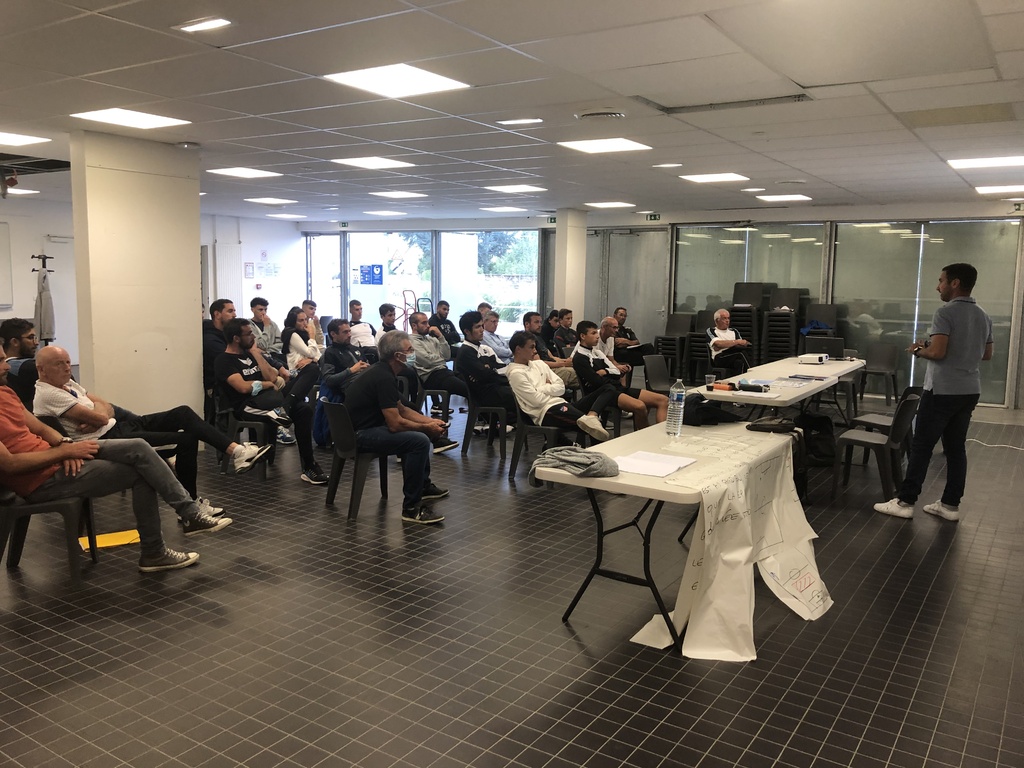 C'est dans le salon d'honneur de DESGRANGE que tous les educateurs (trices) du club de LA ROCHE VF sont venu(e) écouter les propos du responsable technique Charles DEVINEAU .