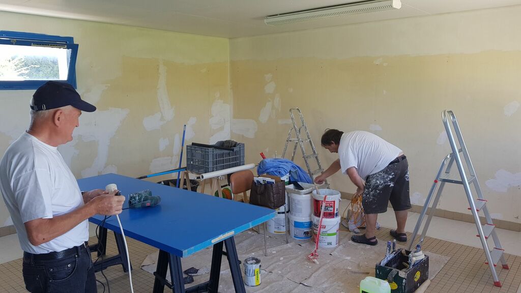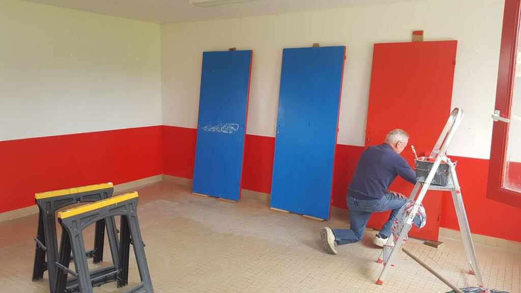 Pendant cette trêve très longue pour les joueurs , deux bénévoles du club se sont mobilisés ces derniers jours pour relooker les vestiaires du groupe N3 au stade Eugène FERRÉ. Didier PEROCHEAU et Thierry FERRENI ont usé de toute leur dextérité pour repeindre ce lieu aux couleurs de club .
