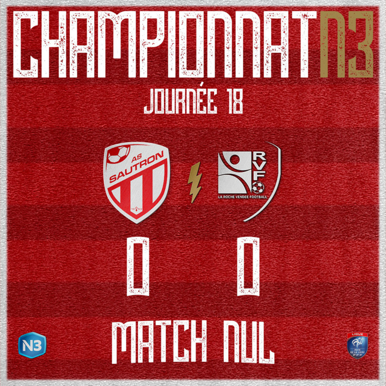 En début de deuxième mi-temps, nos joueurs prenaient clairement le jeu à leur compte, devenaient plus pressants sur le but adverse, et se procuraient plusieurs occasions intéressantes, sans pour autant tromper la vigilance du gardien sautronnais. Ce sont même les locaux qui manquaient d’ouvrir le score sur un contre bien mené (88’) ! Le score ne devait pas bouger et nos Yonnais repartaient de Loire-Atlantique avec 1 point obtenu face à une vaillante équipe de l’AS Sautron (0-0).