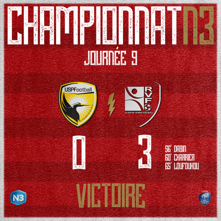 Peu après la reprise, l’US Saint-Philbert manquait à son tour d’ouvrir le score, mais le ballon était dévié in extremis en corner par un pied vendéen (52’) ! Nos Yonnais, eux, ne se rataient pas puisque Dabin, suite à un une-deux avec Chouiah, inscrivait le premier but de la rencontre (1-0, 56’). Notre équipe doublait la mise presque dans la foulée par Charrier qui reprenait un centre en retrait de Ringayen (2-0, 60’). Elle ne s’arrêtait pas là puisque Loufoukou marquait son premier but sous nos couleurs après une erreur de relance du gardien adverse (3-0, 65’). Ce succès permet à nos Yonnais de remonter à la deuxième place, à 1 point du leader saumurois et avec encore 2 matchs de retard à disputer.