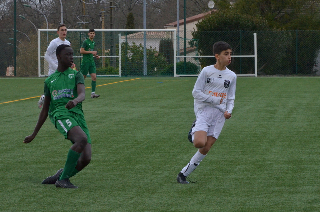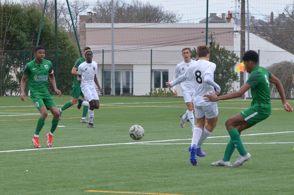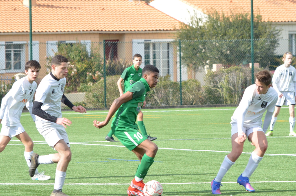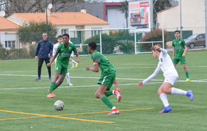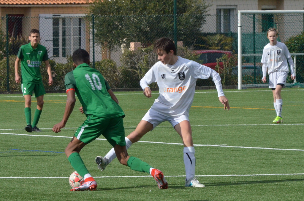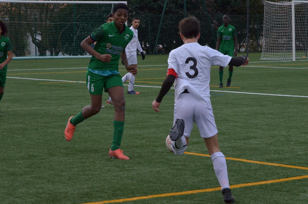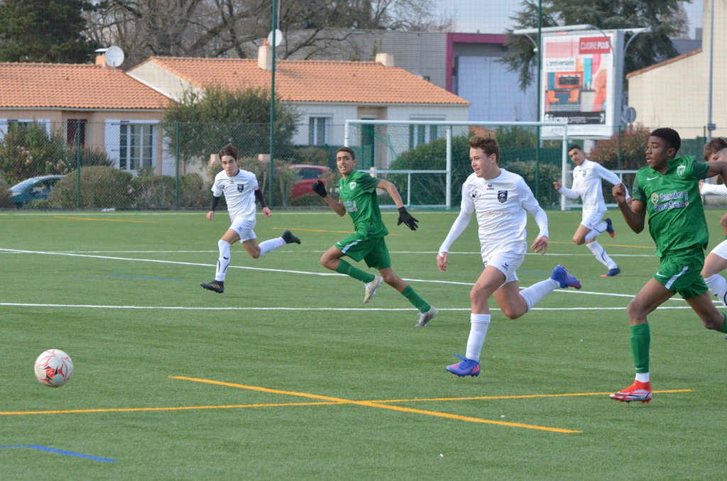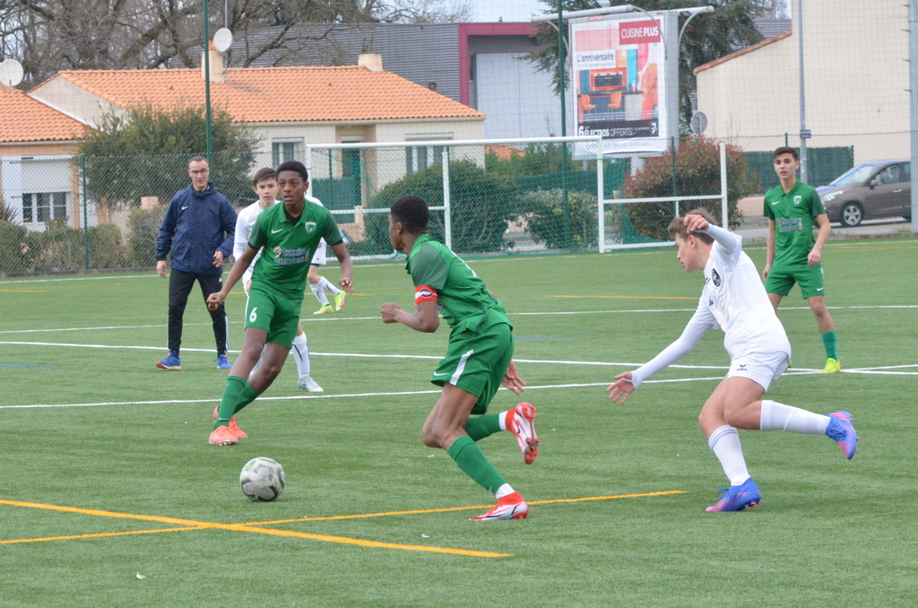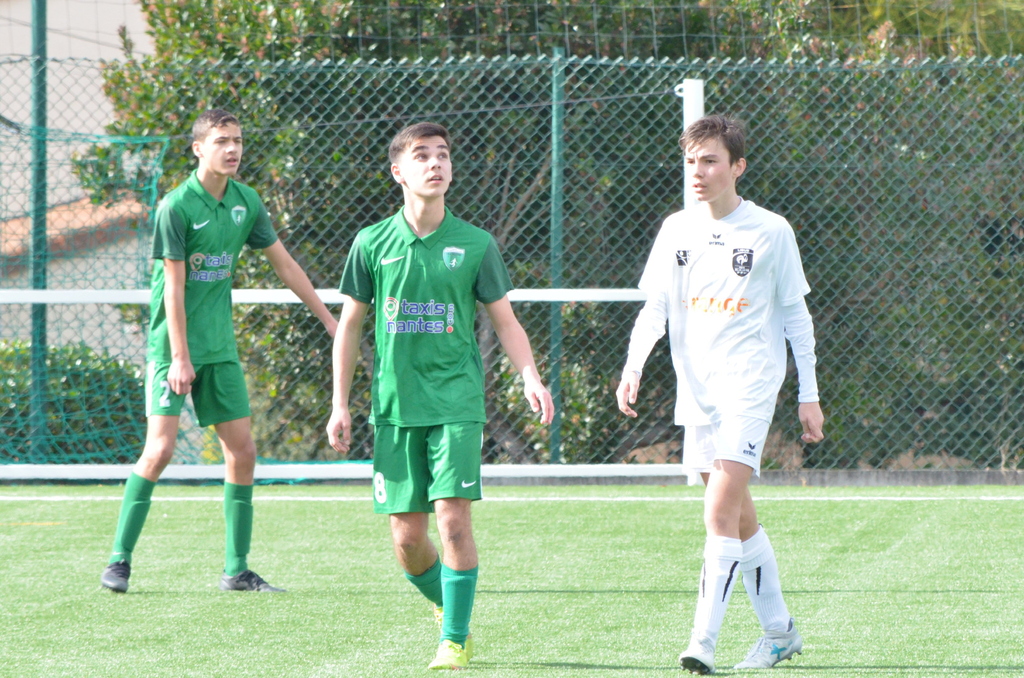 Nos U16 vont bien débuter ce match, en se créant plusieurs occasions profitant d'une défense adverse assez perméable à l'entame du match. Malgré tout, nos attaquants ne parviendrons pas à concrétiser par manque d'efficacité. L'adversaire s'organise et rivalise dans le jeu allant jusqu'à ouvrir le score (25') 0/1. Libérés, les visiteurs vont poser et imposer leur jeu pour récidiver huit minutes plus tard portant le score à 0/2 (33'). Les Yonnais se retrouvent une nouvelle fois à courir après le score multipliant les efforts pour porter le danger chez l'adversaire. Efforts récompensés, puisqu'un peu plus tard Nathan OGER marquera sur pénalty réduisant ainsi le score 1/2 (39'). Malheureusement les Nantais portés par de bons joueurs et plus efficaces en attaque ne vont pas tarder à agraver la marque juste avant la mi-temps 1/3.