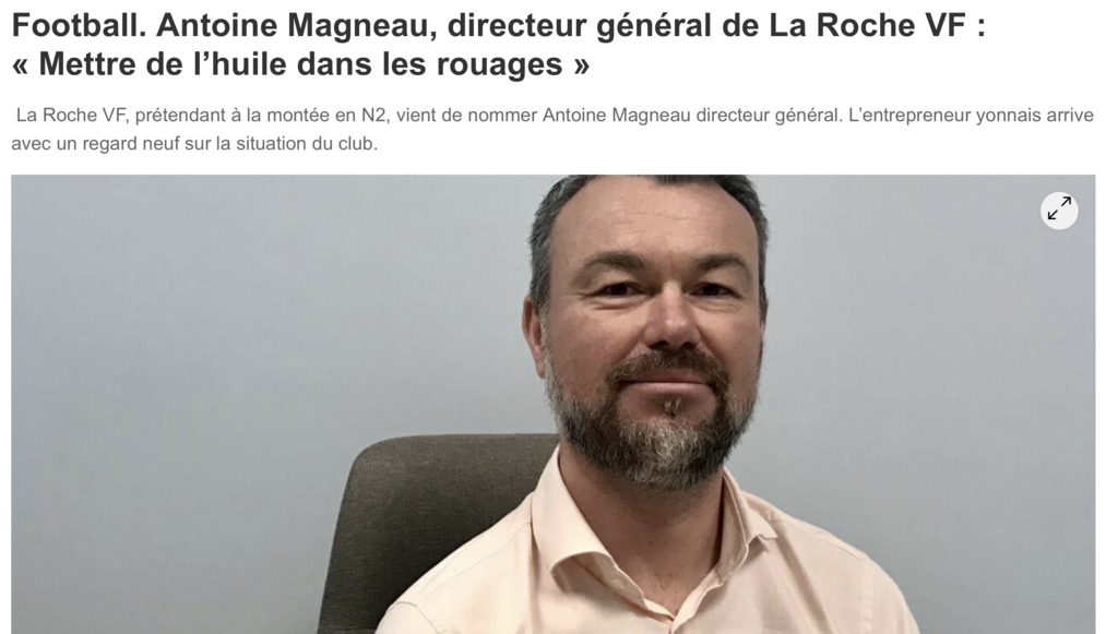 N atif de La Roche-sur-Yon, Antoine Magneau a créé son entreprise, spécialisée dans les piscines, avec son cousin en 2009. 34 collaborateurs travaillent avec lui. Passionné de football, il est désormais directeur général de La Roche VF.