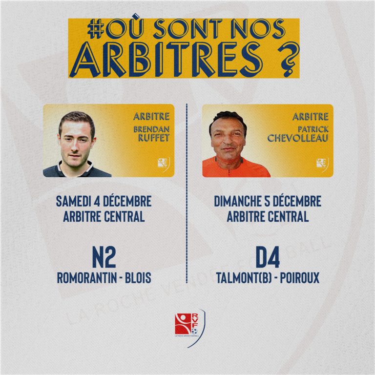 Voici le planning du week-end des arbitres de La Roche VF. Bons matchs à eux !