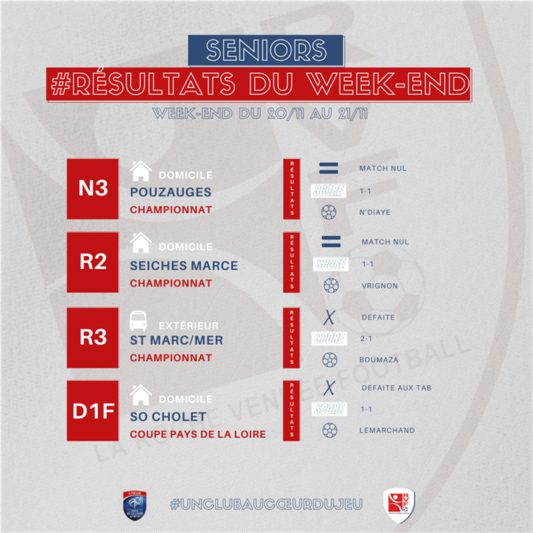 Retrouvez l’ensemble des résultats des équipes de la La Roche VF.