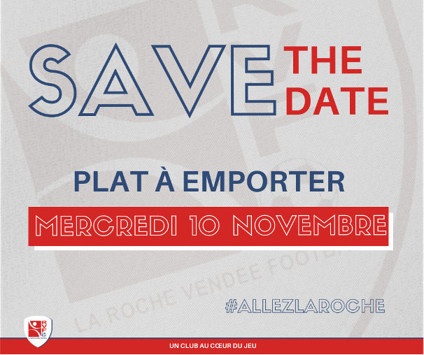 La Roche VF est heureuse de vous convier le 10 novembre prochain à son évènement plat à emporter. Première information importante, votre repas sera à retirer à la salle des fêtes du Bourg sous la Roche.