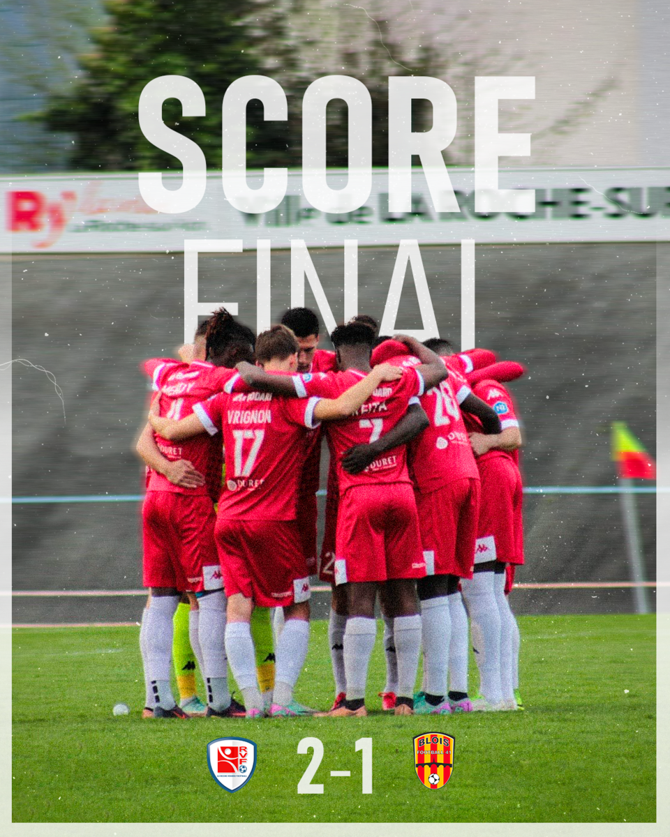 Hier (samedi 20 avril), nos yonnais se sont imposés sur le score de 2-1 face à Blois Foot 41 ! Dans l'ensemble, nos joueurs ont dominé le match, même si Ahamada a du réaliser plusieurs arrêts de grande classe. Malgré un penalty raté en première période, Boissy a ouvert le score à la 51e minute. À la 66e minute, Blois est revenu à 1-1, mais La Roche s'est finalement imposée 2-1 grâce à un superbe but de Jaime Palhares à la 71e minute. Il est à noter qu'Ibrahima Keita a été l'auteur de deux passes décisives.